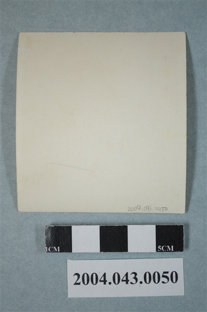 本物件為女子於溪流前獨照,為黑白照片,畫面可見女子坐於地上,其留有俏麗捲短髮,身著無袖洋裝,腳踩高跟魚口鞋,左手撐在後方石頭上,右手掛有外衣,手中提著一只點點樣式提包,眼神望向鏡頭右側,此照片攝於戶外空間,女子身後有小溪流。本件與登錄號2004.043.0051畫面相同。