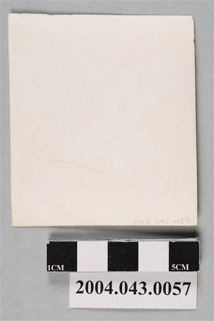 本物件為女子獨照,為黑白照片,畫面可見女子身著深色上衣及長裙,雙手擺於膝上並呈坐姿,此照片攝於戶外空間,畫面中可見後方樹木及草地、石頭等。