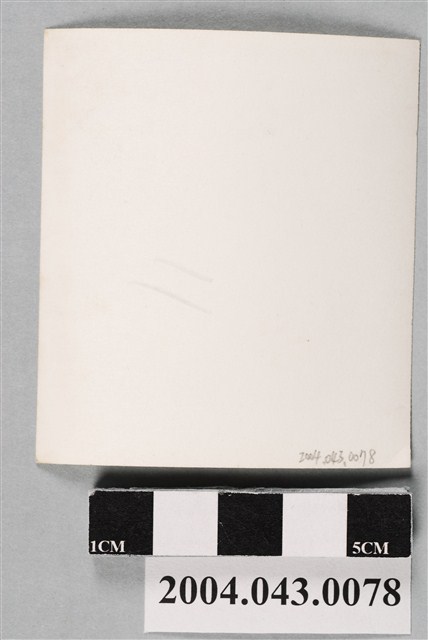 本物件為1名男子與1名女子合影之照片。物件本體為一張直式照片,圖像中1名梳油頭,身穿麻製短袖,手中叼著菸的男子,與1名捲短髮,身穿花邊大領的女子,2人在一間木板隔間的空間內,並肩而坐於椅子上合照。本物件與登錄號2004.043.0077照片中2人相同。