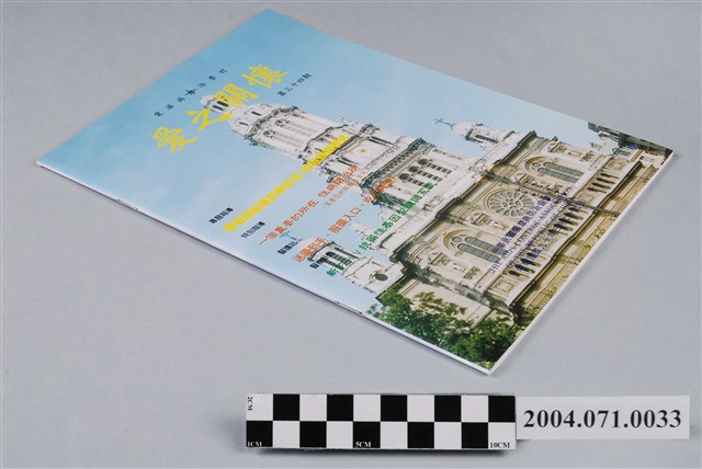 本物件為愛滋病防治季刊 愛之關懷第三十四期,封面圖案為教堂高塔,上方標題為「愛滋病防治季刊 愛之關懷第三十四期」,其中「愛之關懷」為黃色字樣,其餘為黑色字樣,中間為該期文章題目底部有「中華民國愛滋病防治協會 THE AIDS CONTROL ASSOCIATION OF THE REPUBLIC OF CHINAN 中華民國九十年三月二十九」藍色字樣,文章內容主要與愛滋病防治及治療等議題相關,封底為保險套廣告。