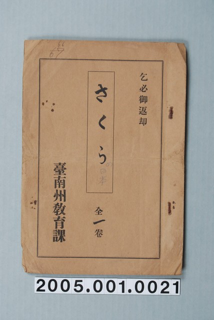 2005.001.0021 臺南州教育課核發影片「櫻花的日本」准演執照