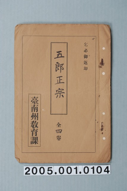 2005.001.0104 臺南州教育課核發影片「五郎正宗」准演執照