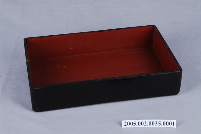 1.本物件為彩繪蘭花蝴蝶漆器之盒身,外觀全為黑色,盒內為紅色,上方有道黃色漆,應是製作時失誤或後人使用所留下。單就照片無法判斷其為何用,除略有磨損外保存尚稱完整。