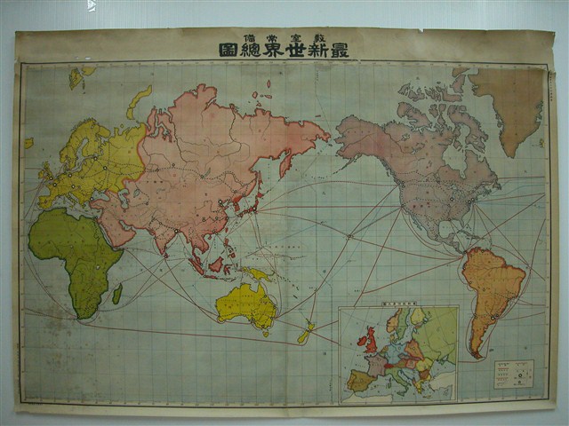 〈教室常備最新世界總圖〉,東京教育用品研究會編纂,為1920年代的世界地圖。