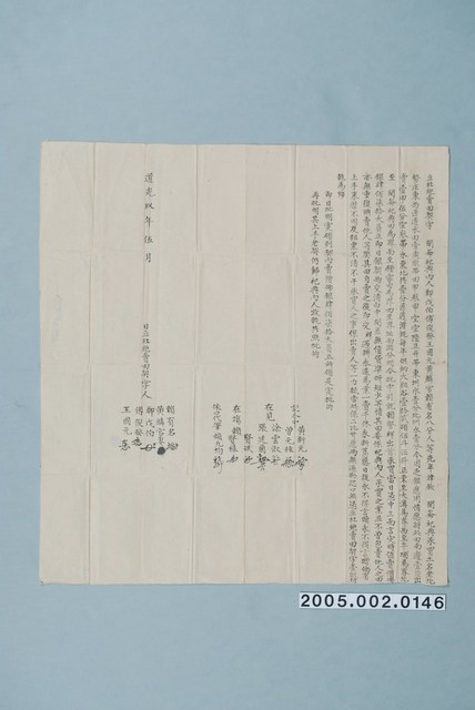2005.002.0146 道光9年關爺祀典內人鄭戊伯等立杜絕賣田契字