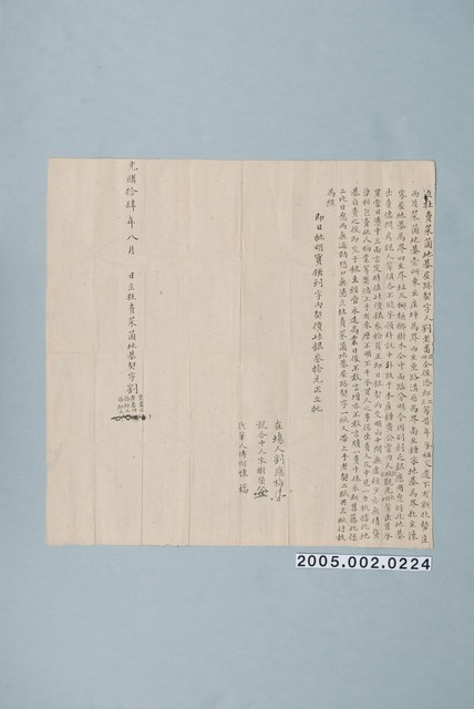 2005.002.0224 光緒14年劉老畨二等立杜賣菜薗地基屋跡契字