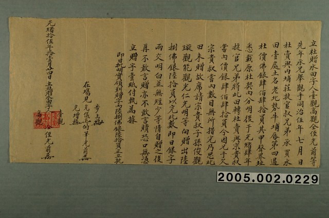 2005.002.0229 光緒15年鍾臺觀等立杜贈水田契字
