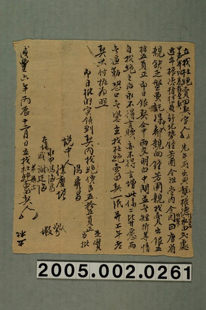 2005.002.0261 咸豐6年立找杜絕賣田契字