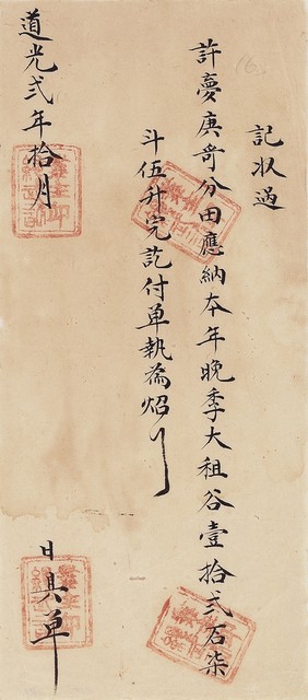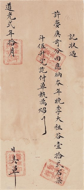 2005.002.0278 道光2年10月業主邱繩武給許夢庚完租單