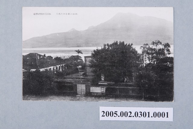 1.私立淡水高等女學校發行之「私立淡水高等女學校」明信片組之一,黑白印刷,由淡水李玉麟攝影、臺北岡部印刷,影像內容從淡水的淡水高等女學校眺望對岸的觀音山。