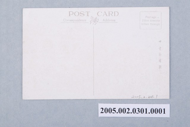 2.正面滿版印刷,左上方印有黑色說明文字「校舍より觀音山を眺む、私立淡水高等女學校」。背面則印有灰色文字「郵便はかき、POST CARD、Correspondence、Address」,地址欄與通信欄分隔線上有飛馬商標圖案,郵票張貼方框內有「Postage、2 Sen domestic、10 Sen foreign」等字。
