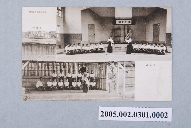 1.私立淡水高等女學校發行之「私立淡水高等女學校」明信片組之一,黑白印刷,由淡水李玉麟攝影、臺北岡部印刷,計有2張影像,上圖為在練武場(武道場)上二名女學生練習劍道對打,一旁坐有女學生們觀戰的情形,下圖為女學生們在射箭場(弓道場)上看教練示範射箭的情形。