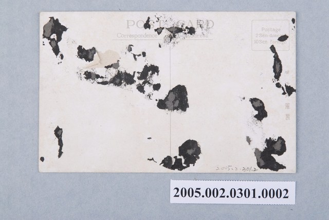 2.正面黑白印刷,由上、下二張圖組合而成,由上而下印有黑色說明文字「私立淡水高等女學校、弓道場、武道場」。背面則印有灰色文字「郵便はかき、POST CARD、Correspondence、Address」,地址欄與通信欄分隔線上有飛馬商標圖案,郵票張貼方框內有「Postage、2 Sen domestic、10 Sen foreign」等字。背面殘留有黑紙黏著痕跡,部分字被覆蓋。