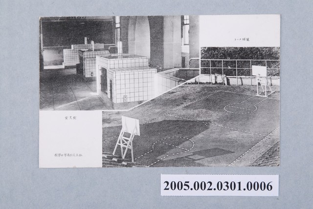 1.私立淡水高等女學校發行之「私立淡水高等女學校」明信片組之一,黑白印刷,由淡水李玉麟攝影、臺北岡部印刷,計有2張影像,上圖為烹飪教室,下圖為籃球場。