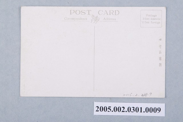 2.正面滿版印刷,上方印有黑色說明文字「東寮、私立淡水高等女學校」。背面則印有灰色文字「郵便はかき、POST CARD、Correspondence、Address」,地址欄與通信欄分隔線上有飛馬商標圖案,郵票張貼方框內有「Postage、2 Sen domestic、10 Sen foreign」等字。