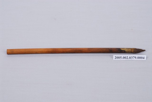 本件為樹仔腳錦樂軒鼓架之毛筆,中國的傳統書寫工具,文房四寶之一,筆管木頭製作,筆毛傳統上採用動物毛,現今有塑膠毛可供替代,功用為寫字、書畫使用。