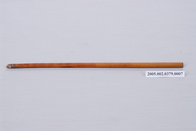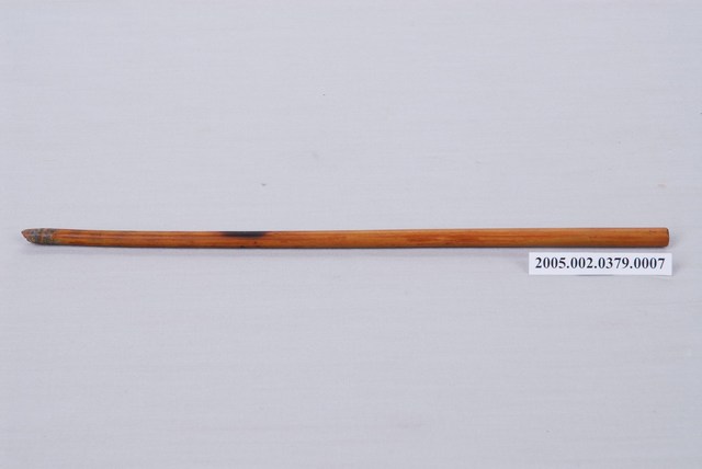 本件為樹仔腳錦樂軒鼓架之鼓棒,竹子製作,鼓棒呈現淺咖啡色,功用為敲擊鼓面,使鼓鳴共振發出聲響,保存良好。