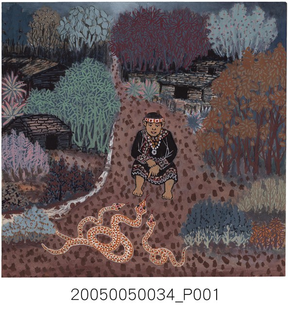 2005.005.0034 陳景生《婦女遇百布蛇》