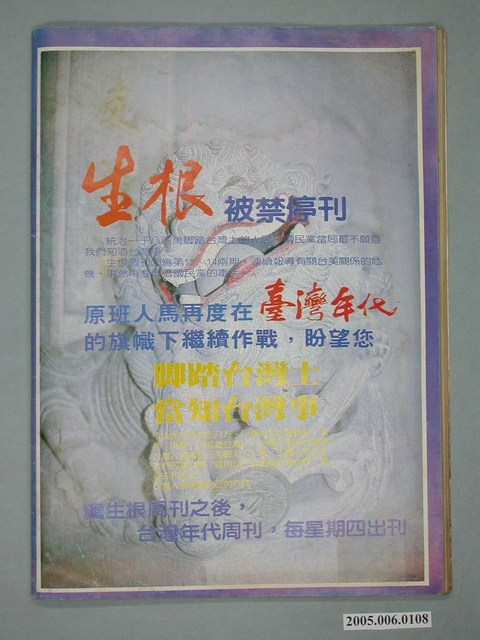 此件為《深耕》雜誌的系列刊物之一,《深耕》為1981年由黃石城創辦的黨外政論雜誌,後交由許榮淑經營,主要主筆人包含林正杰、林世煜、林濁水等,其中內容包括編輯手記、國會趨勢、選舉與黨外動向、生活與政治、鄉土人物、藝文、漫畫等等。《深耕》曾在1982年對於「杯葛事件」中的部分黨外立委進行批判,並引起當時黨外勢力的對立。 「黨外」一詞主要為非中國國民黨的臺灣政治勢力,而「黨外」政治勢力,主要的宣傳方式為「黨外雜誌」,「黨外雜誌」最早如1950年代的《自由中國》、1970年代的《大學》、《臺灣政論》,後在1980年代「黨外雜誌」發展蓬勃,代表刊物為《八十年代》與《美麗島》,最終,這股媒體趨勢在1986年民進黨成立、1987年解除戒嚴之後逐漸式微。「黨外雜誌」在當時激起了臺灣民眾的民主意識,也逐步促成了言論自由開放。(蕭淑玲,2006,153-155)。