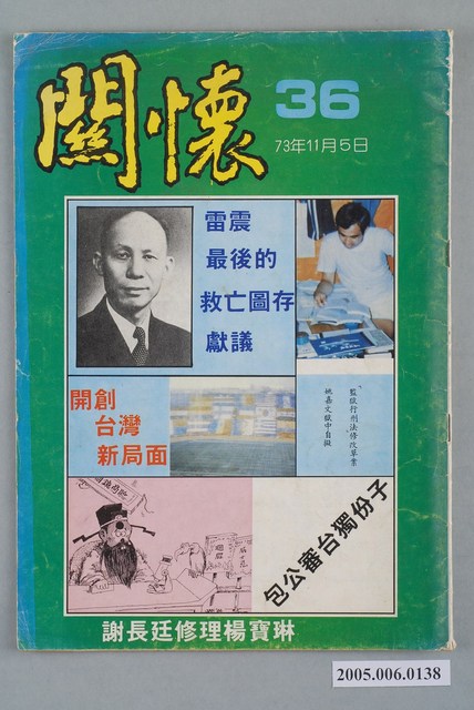 此物件為《關懷》雜誌,由周清玉等人創辦,此月刊的創刊宗旨為,對臺灣在1980年代的政治犯受刑人及其家屬關懷工作。本刊物的創辦人周清玉為獨派的重要人士姚嘉文之妻,後因姚嘉文被捕入獄,周清玉代替姚嘉文於1980年參選並當選臺北市國大代表,且在1981年創辦《關懷》雜誌與「關懷中心」,之後做為民進黨的創黨元老繼續從政。 「黨外」一詞主要為非中國國民黨的臺灣政治勢力,而「黨外」政治勢力,主要的宣傳方式為「黨外雜誌」,「黨外雜誌」最早如1950年代的《自由中國》、1970年代的《大學》、《臺灣政論》,後在1980年代「黨外雜誌」發展蓬勃,代表刊物為《八十年代》與《美麗島》,最終,這股媒體趨勢在1986年民進黨成立、1987年解除戒嚴之後逐漸式微。「黨外雜誌」在當時激起了臺灣民眾的民主意識,也逐步促成了言論自由開放。(蕭淑玲,2006,153-155)。