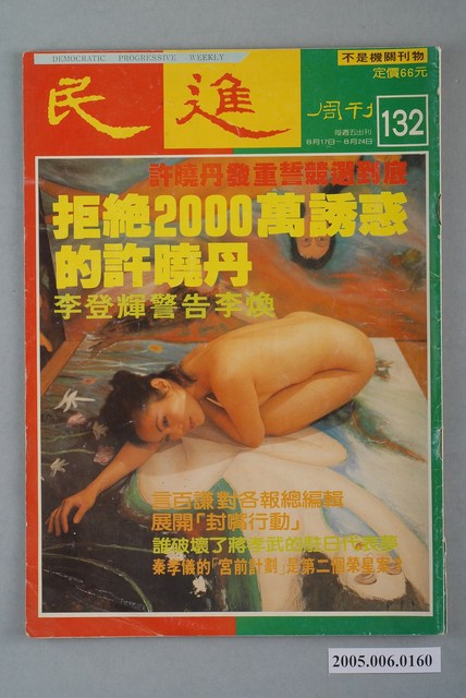 《民進周刊》為1987年2月19日創刊的黨外雜誌,創辦人為吳祥輝。此刊物曾陸續以《民進時代》、《民進廣場》、《民進天地》、《民進世界》等名稱出版,最終在1990年8月20日停刊。此刊物標榜「不是機關報」、「人民第一、民進黨第二」,另《民進周刊》雖然在政治立場與民進黨親近,但並非民進黨的附隨雜誌 「黨外」一詞主要為非中國國民黨的臺灣政治勢力,而「黨外」政治勢力,主要的宣傳方式為「黨外雜誌」,「黨外雜誌」最早如1950年代的《自由中國》、1970年代的《大學》、《臺灣政論》,後在1980年代「黨外雜誌」發展蓬勃,代表刊物為《八十年代》與《美麗島》,最終,這股媒體趨勢在1986年民進黨成立、1987年解除戒嚴之後逐漸式微。「黨外雜誌」在當時激起了臺灣民眾的民主意識,也逐步促成了言論自由開放。(蕭淑玲,2006,153-155)。