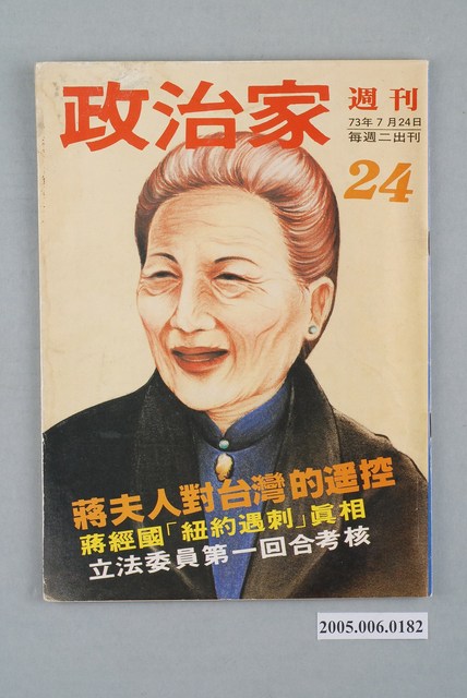 此物件為《政治家》雜誌,於1981年創辦,主要的創辦人為鄧維楨,相關系列刊物有《民主人》、《民主政治》、《民主叢書》、《觀察》等。鄧維楨為《大學雜誌》的創辦人,此雜誌於1960年代末期至1970年代初為臺灣社會帶來監督政府、社會改革的風氣,而到了美麗島事件後,造成民眾對政治議題的關心,鄧維楨也隨之創辦《政治家》雜誌,但因個人問題後改為弟弟鄧維賢負責,《政治家》主要介紹黨外人物,也加以介紹黨外的活動以及評論政治時局,有時也會述說黨外內部的爭議。 「黨外」一詞主要為非中國國民黨的臺灣政治勢力,而「黨外」政治勢力,主要的宣傳方式為「黨外雜誌」,「黨外雜誌」最早如1950年代的《自由中國》、1970年代的《大學》、《臺灣政論》,後在1980年代「黨外雜誌」發展蓬勃,代表刊物為《八十年代》與《美麗島》,最終,這股媒體趨勢在1986年民進黨成立、1987年解除戒嚴之後逐漸式微。「黨外雜誌」在當時激起了臺灣民眾的民主意識,也逐步促成了言論自由開放。(蕭淑玲,2006,153-155)。