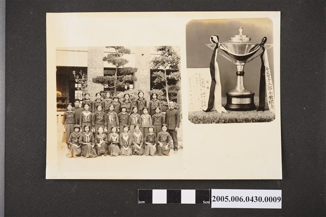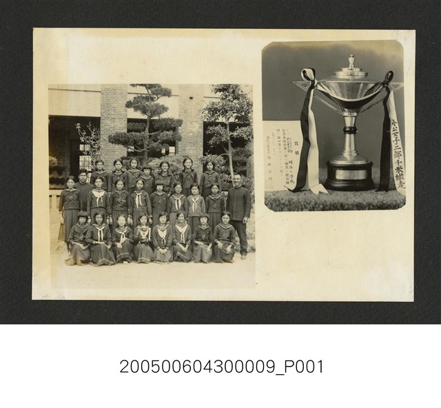 2005.006.0430.0009 臺南市明治公學校師生合照與競賽優勝獎盃