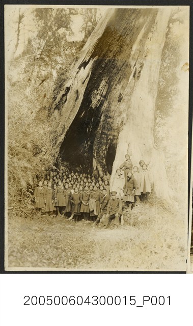 2005.006.0430.0015 臺南市明治公學校師生合照於阿里山神木