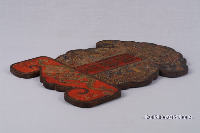 本組道教洞案神牌為一組三件,以木雕彩繪方式製作,外觀呈上半部龍牌、下半部底座的聖旨牌造形。龍牌的形式類似龍頭籤彩紙,中央一道直框,上方彩繪一條整正面蟠龍,兩旁各一條尾部朝上的降龍。中央框內三面分別鐫刻扁形宋體字:「大羅玉京妙道」、「龍章鳳篆真文」、「華堂內境高僊」,分別代表道教至尊三清道所主之至妙道法,道教經典、文檢等文字之尊奉,以及道教法壇所啟請的諸位仙真,下方底座在朱紅底色上繪纏枝花卉。