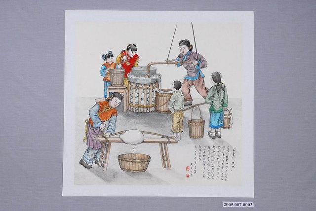 2005.007.0003 黃金田繪《石磨仔「挨粿」》