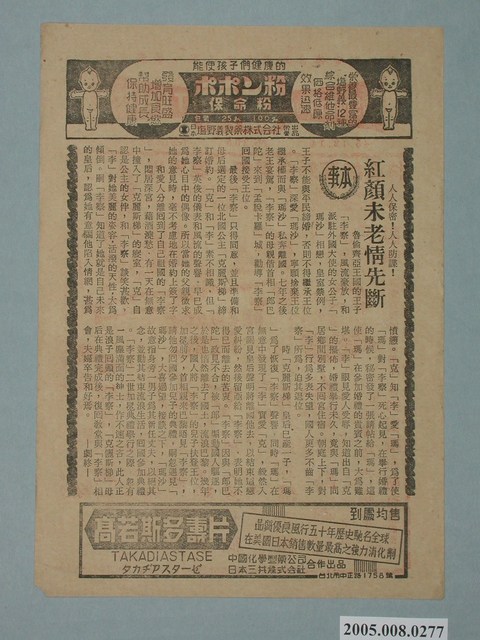 本件保存情況良好,為雙面印刷。播放的戲院為萬國戲院。其餘部分為電影紅顏未老情先斷。本片講述一位母親南茜(Nancy)在與前夫離婚後再婚,南茜(Nancy)得到了女兒的撫養權,但是她必須再一次得贏回青春期女兒的愛。由姜.羅傑斯(Ginger Rogers)、米高.蘭尼(Michael Rennie)、米爾翠德.奈維克(Mildred Natwick)主演。