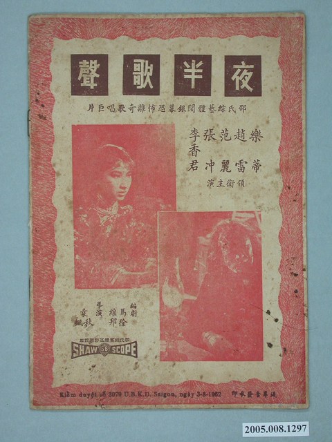 1.國語片《妙人妙事》的電影特刊,由堤岸合眾承印,由邵氏電影公司發行。特刊封面上是手繪圖樣搭配該片劇照,而內頁則主要是《妙人妙事》插曲曲譜,包括〈化裝師〉、〈荔枝紅〉、〈充行長〉、〈三杯酒〉、〈石榴花開〉、〈月光亮〉等;以及電影本事、演職員表、《金喇叭》之電影廣告;其中並有一頁越南文之介紹。而封底為國語片《夜半歌聲》的電影劇照及文案廣告。