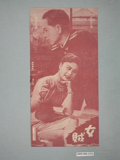 本物件為《女賊》電影本事,紙質文物。物件正面以1名身著短袖襯衫及長褲的女性照片為設計,可見「女賊」、「新中國電影企業股份有限公司」字樣。物件內頁可見電影劇情介紹、劇照、職員表、演員表、主題曲歌詞及簡譜、物件封底可見1名男性及1名女性的照片、「反攻大陸 建設臺灣」、「鐵梅編輯」、「女賊」、「啟成照相製版廠」字樣。