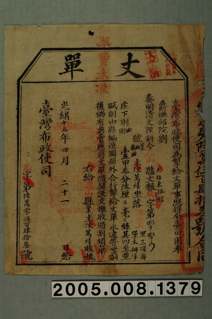 2005.008.1379 光緒14年臺灣布政使司給林祥記丈單