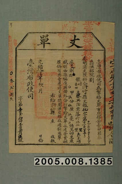 2005.008.1385 光緒14年臺灣布政使司給蔡興隆丈單
