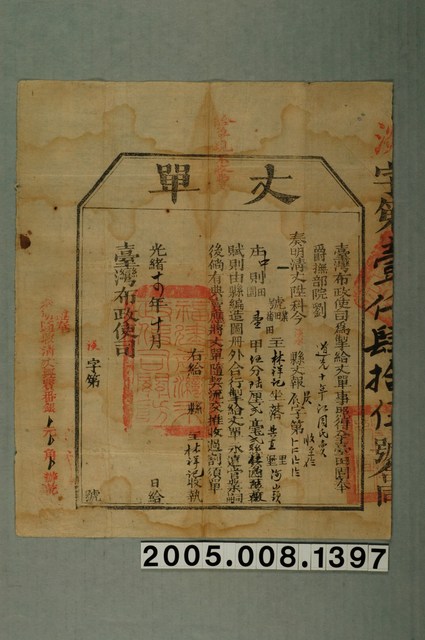 2005.008.1397 光緒14年臺灣布政使司給林祥記丈單