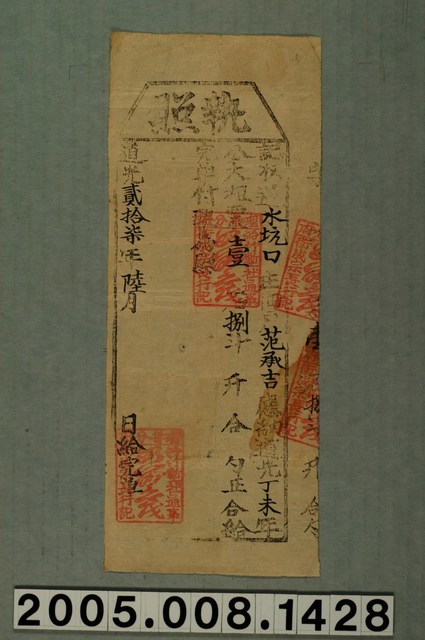 2005.008.1428 道光27年竹塹社通事給范承吉執照