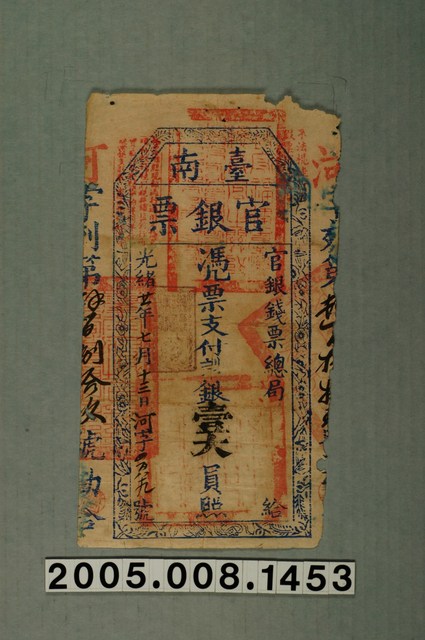 2005.008.1453 1895年臺南臺灣民主國發行壹大員的官銀票紙鈔