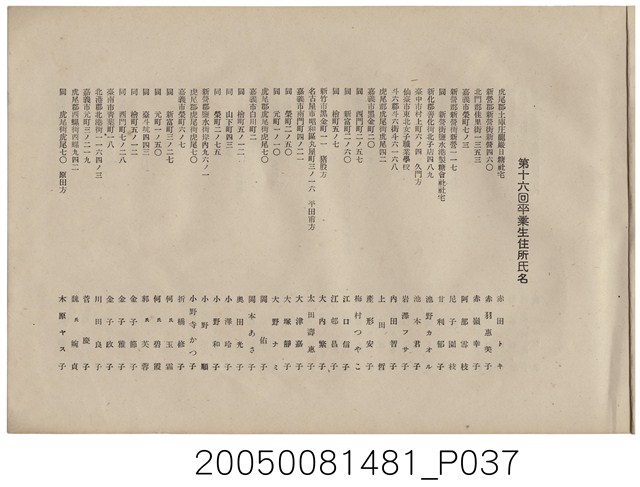 2005.008.1481 《嘉義高等女學校第16屆畢業紀念冊》