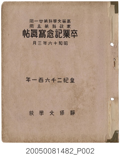2005.008.1482 《靜修女學校高等女學科第21暨家政科第5屆畢業紀念冊》