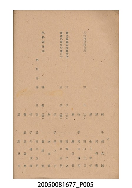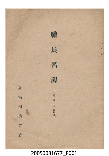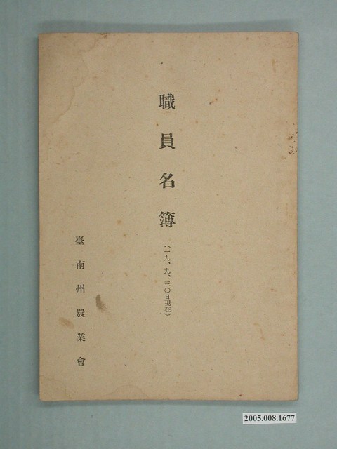 2005.008.1677 昭和19年臺南州農業會《職員名簿》