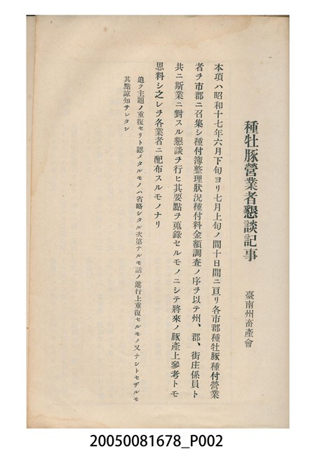 2005.008.1678 臺南州畜產會《種牡豚營業者懇談記事》