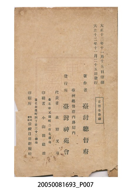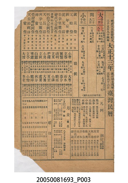 2005.008.1693 大正十三年《臺灣民曆》