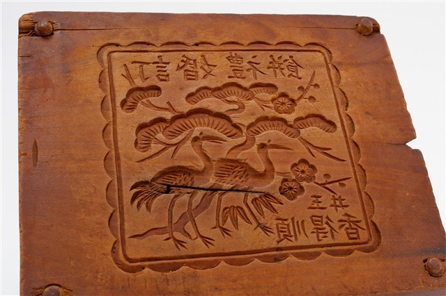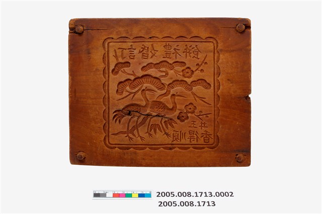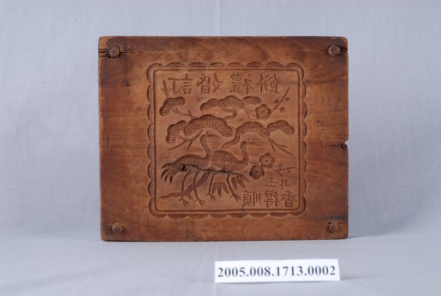 2005.008.1713.0002 方形單面雕松鶴遐齡紋餅印底板