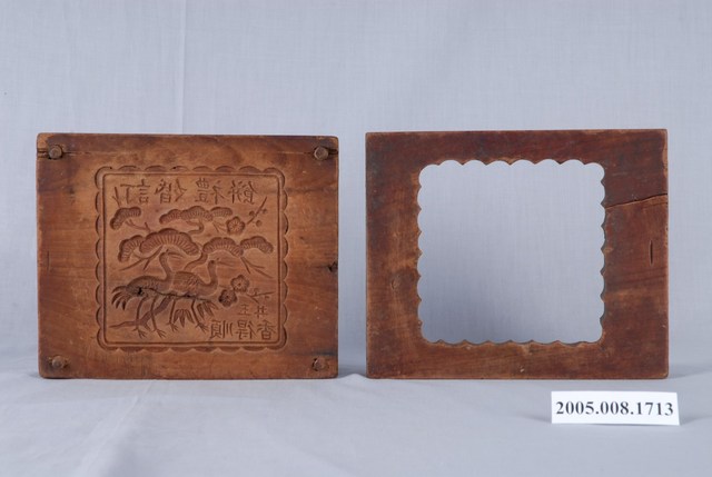 2005.008.1713 方形單面雕松鶴遐齡紋餅印模組