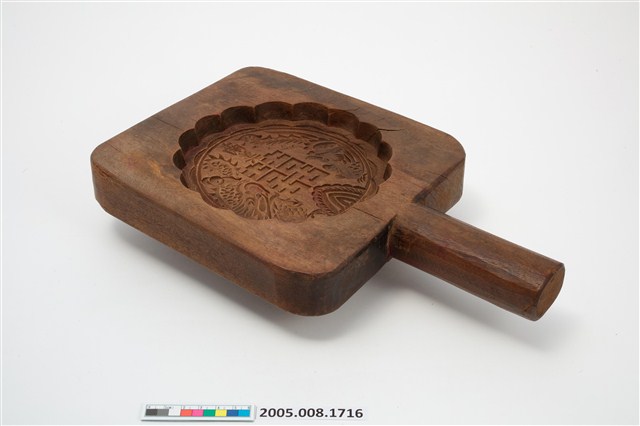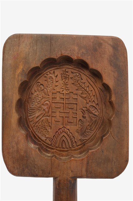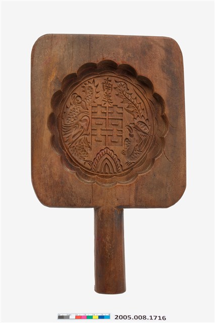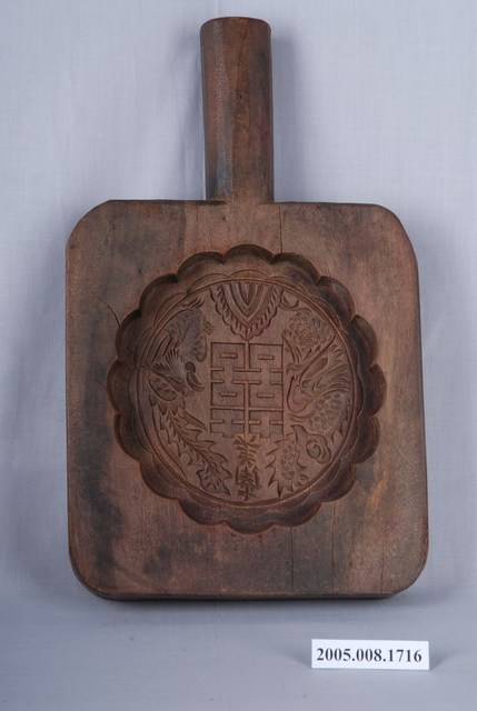 2005.008.1716 南美長方形單面雕龍鳳囍字紋帶柄餅印