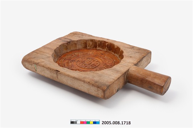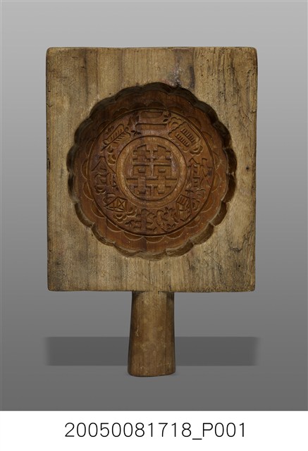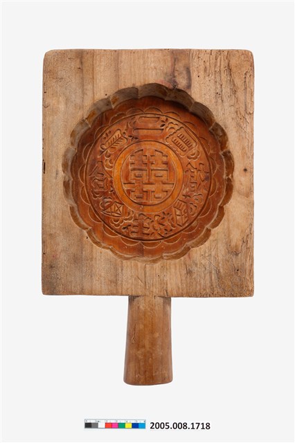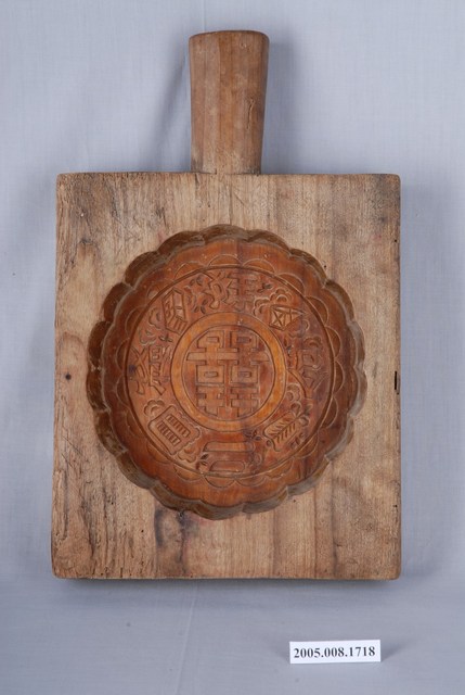 2005.008.1718 長方形單面雕二姓合婚囍字紋帶柄餅印