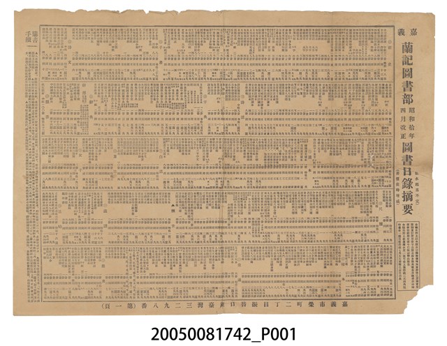〈嘉義蘭記圖書部圖書目錄摘要 (昭和10年)〉