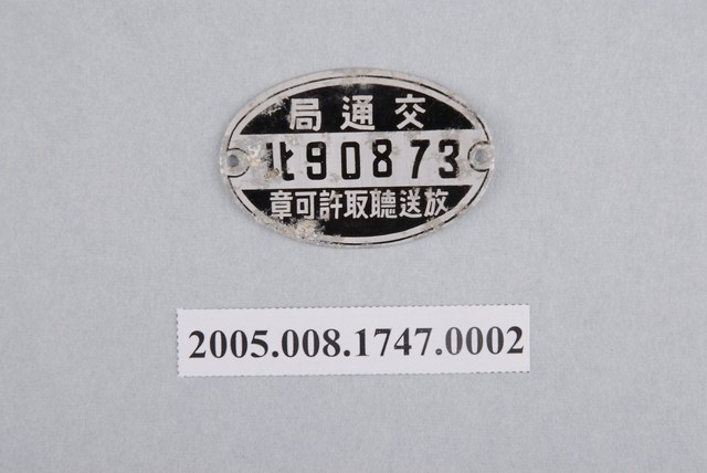 2005.008.1747 林源三收聽廣播許可通知書及牌