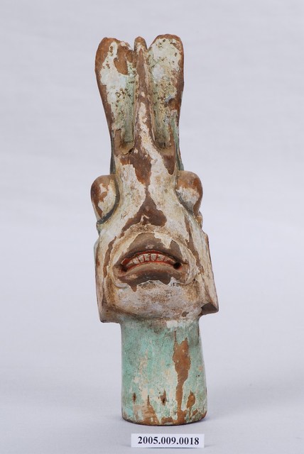 本件保存尚可,為布袋戲角色蝦兵怪之戲偶頭,偶之特徵為蝦首,偶頭已褪色。